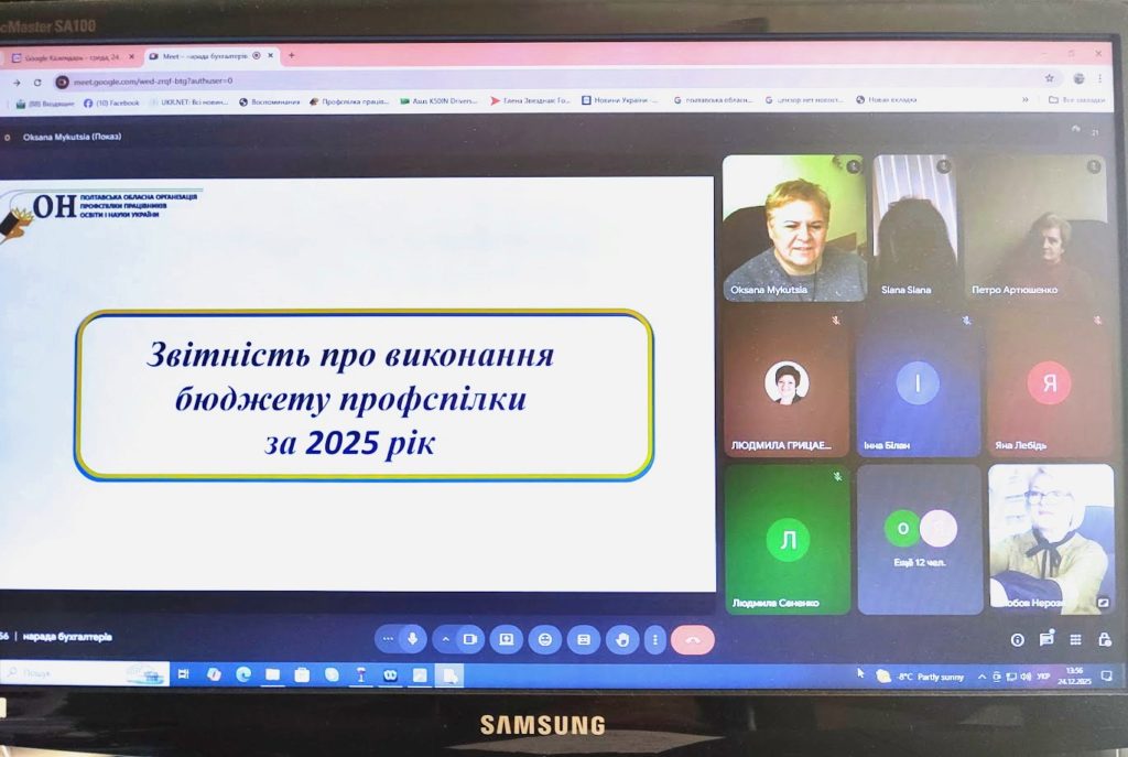 24 грудня 2025 року в онлайн режимі, на платформі Googl Meet, відбулося навчання профспілкових бухгалтерів територіальних та первинних організацій Профспілки, які перебувають на обліку в Полтавському обласному комітеті. Спікер заходу Оксана Микуця (головний бухгалтер ОК) професійно та вмотивовано визначила основні позиції щодо складання та оформлення звітності при зведенні річних фінансових показників виконання профспілкового