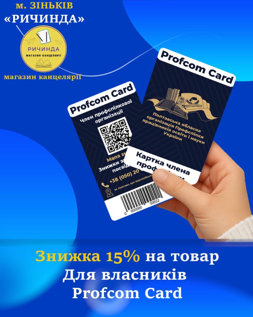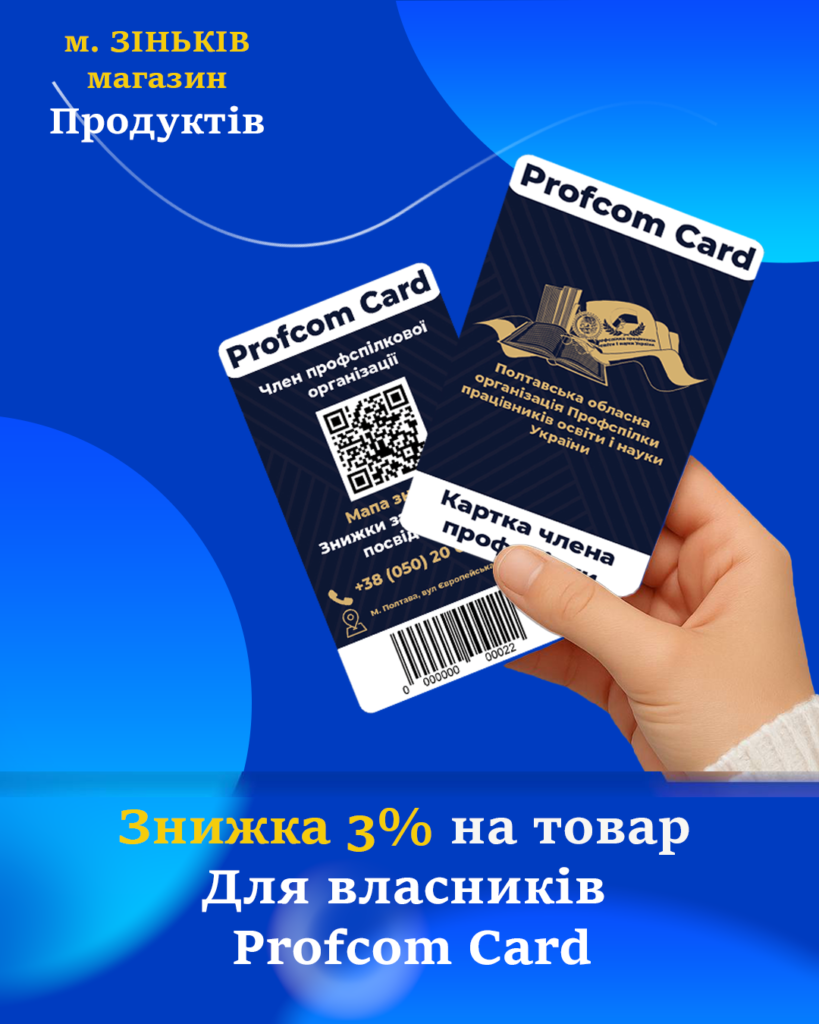 🎉 Для членів профспілки за наявності Profcom Card діє знижка — 3%