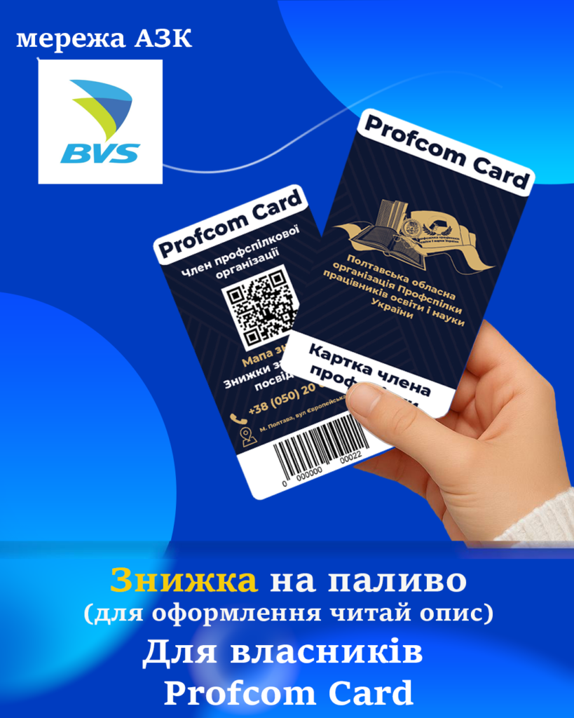 Для членів профспілки за попередньою реєстрацією у вашої голови профспілкової організації діють спеціальні знижки на пальне на АЗК BVS (за наявності пального, заправка до 100 л):
